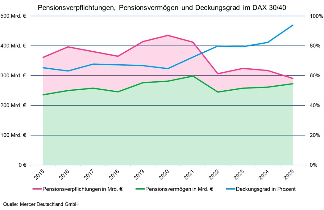 Im Herbst hatten die Porsche AG (nicht aber die Porsche Automobil Holding) und Sartorius den DAX verlassen, während die GEA Group und Scout24 neu aufgenommen wurden. Das führte jedoch zu einem Anstieg des Pensionsvermögens von lediglich einer halben Mrd. Euro. Gleiches gilt für die Passivseite.