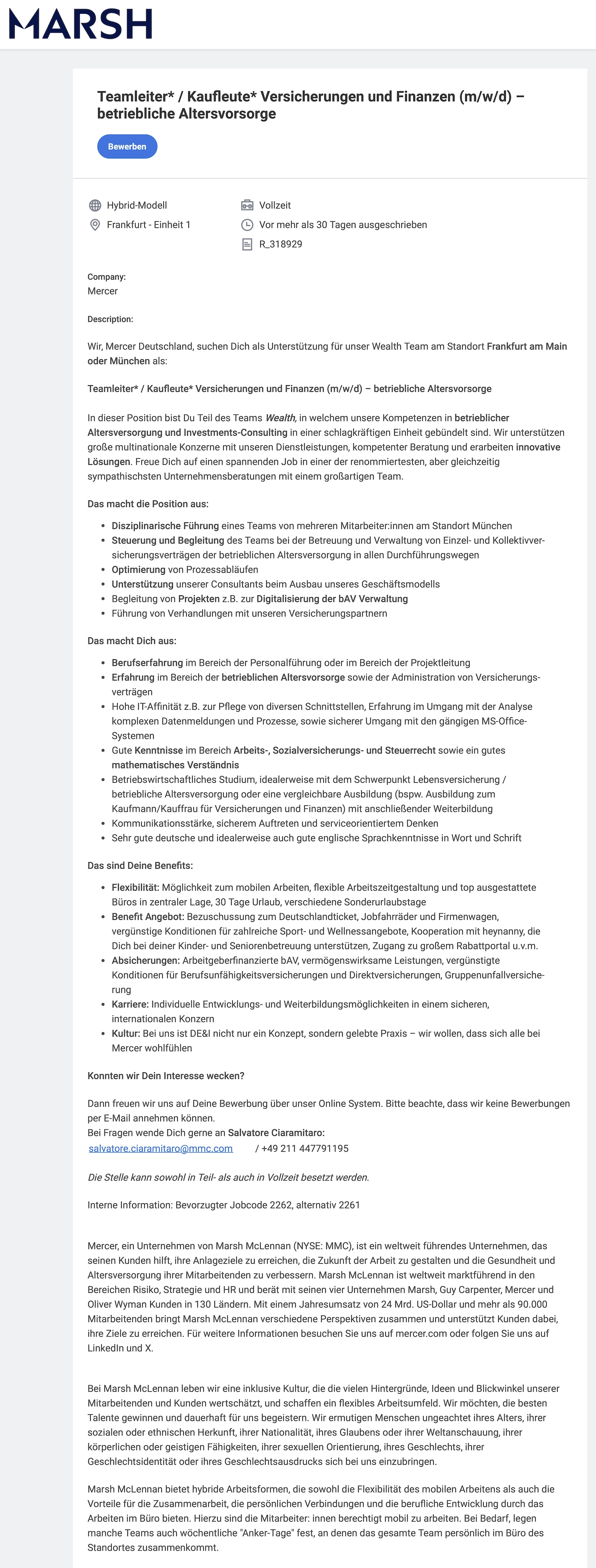 Wir, Mercer Deutschland, suchen Dich als Unterstützung für unser Wealth Team am Standort Frankfurt am Main oder München als: