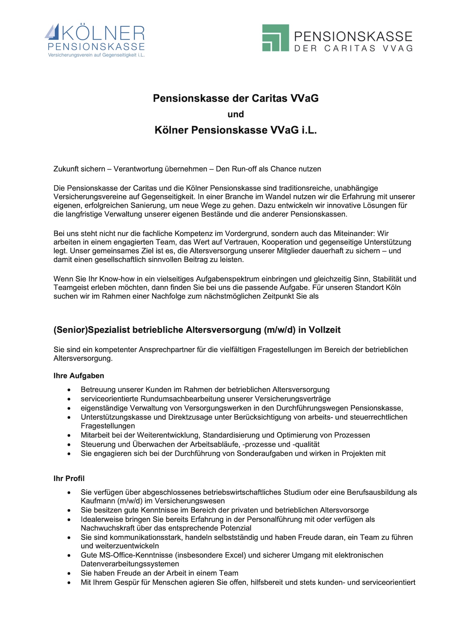 Bei uns steht nicht nur die fachliche Kompetenz im Vordergrund, sondern auch das Miteinander: Wir arbeiten in einem engagierten Team, das Wert auf Vertrauen, Kooperation und gegenseitige Unterstützung legt. Unser gemeinsames Ziel ist es, die Altersversorgung unserer Mitglieder dauerhaft zu sichern – und damit einen gesellschaftlich sinnvollen Beitrag zu leisten.
