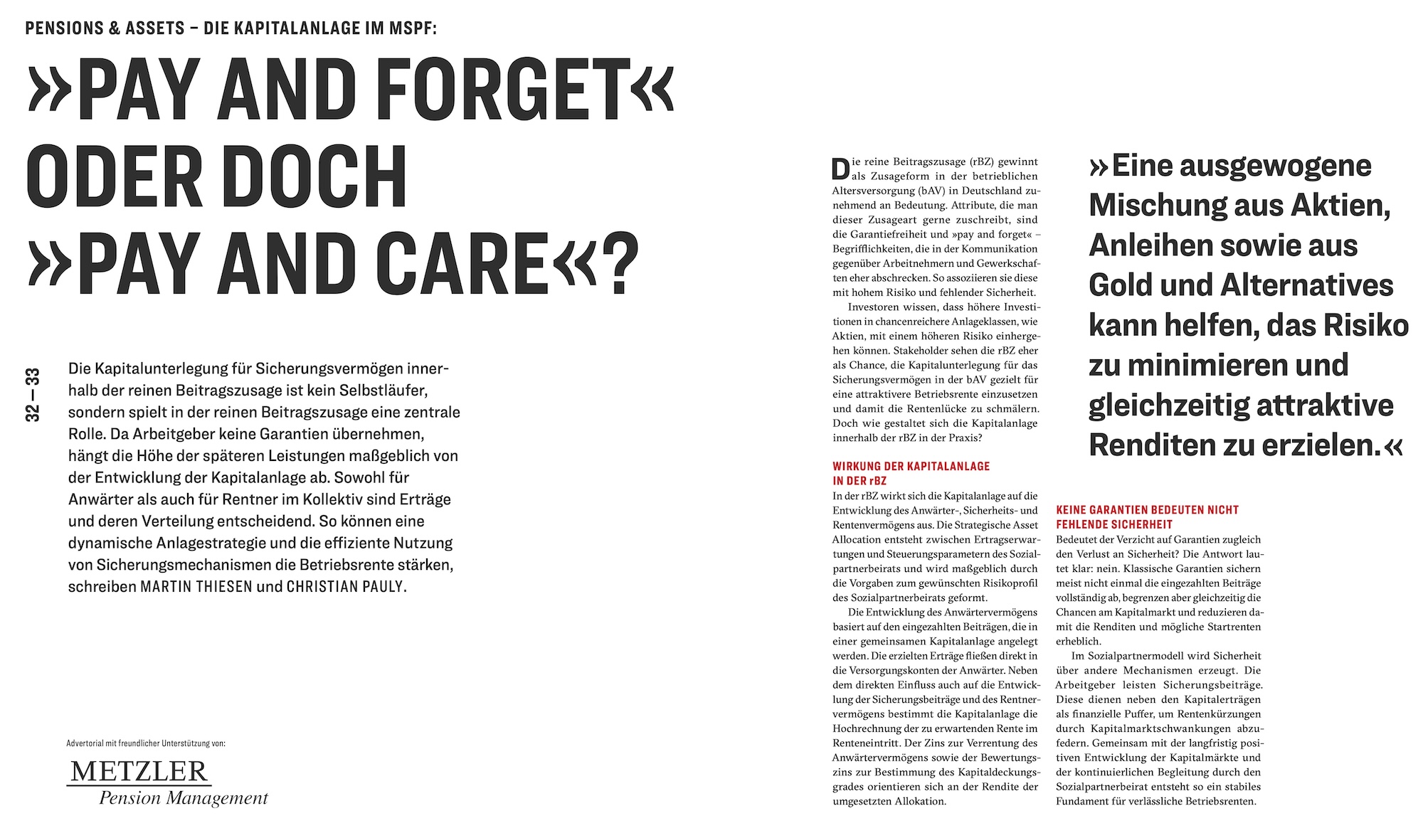 Pensions & Assets-Advertorial – Die Kapitalanlage im MSPF: